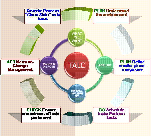 The concept is an enhancement over the PDCA. While the Deming’s PDCA concept/principle is a standard practice, the TALC is designed based on the specific needs of our clients. The TALC adds value to our DMADVC and PDCA concept. |